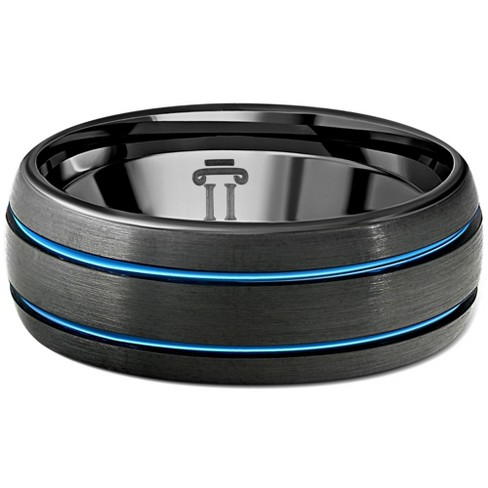 Triton Black Blue Tungsten Carbide 8mm Offset Grooved Line Comfort Fit Band Mens Wedding Band Shop